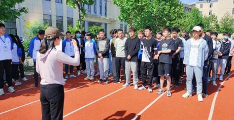 公司党支部书记薛媛丽老师强调了运动会的相关事项,鼓励同学们乐在其中,展现自我。