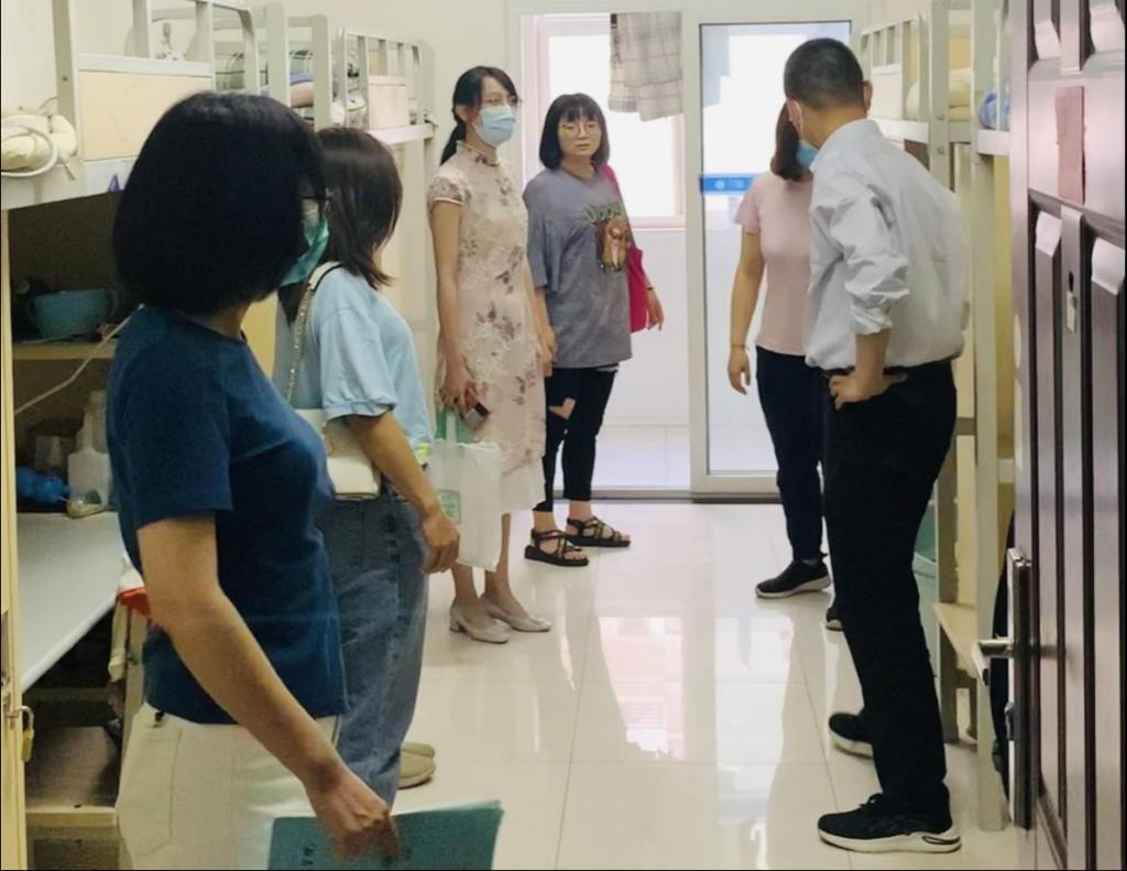 5月29日下午,公司开展寓见美好,宿说文明——消灭最差宿舍中期检查活动,全体辅导员参与此次中期检查活动。公司党支部书记薛媛丽带领辅导员老师对宝福路校区宿舍进行检查,员工科科长白兰带领辅导员对蟠龙校区员工宿舍进行检查。