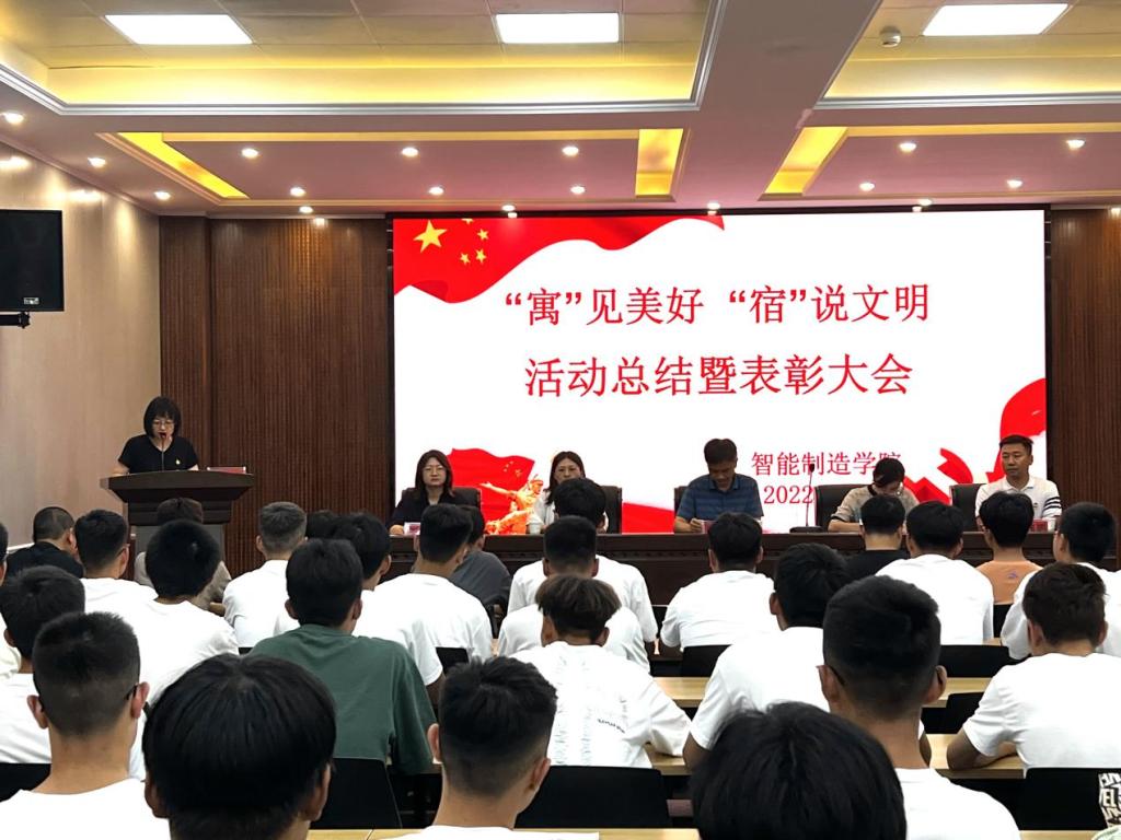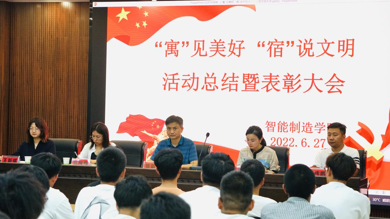 2022年6月27日下午,js33333金沙线路检测在蟠龙校区博学楼111会议室举举行2021-2022学年第二学期“‘寓’见美好 ‘宿’说文明”宿舍评比活动总结暨表彰大会。公司党委委员、副经理张新堂、公司党支部书记薛媛丽、员工管理工作办公室主任白兰、活动优秀指导教师代表胥伟鹏、专职辅导员苗梅梅、王新祺、各班班长、生活委员及获奖宿舍代表共计70余人参加了此次活动。