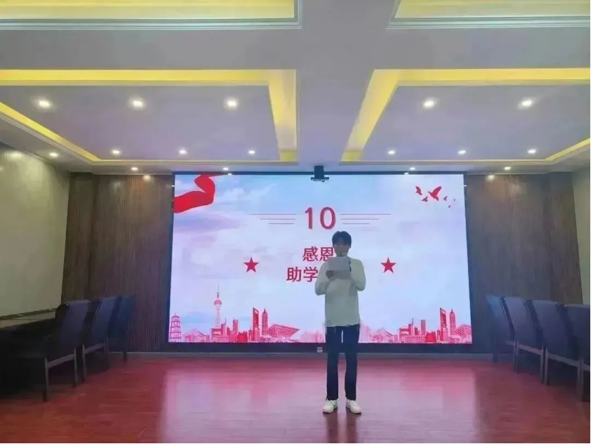比赛以同学们感谢国家、感谢资助政策、感谢公司的短视频拉开序幕,梁金阳、刘怀瑞、赵振乾、蒲田、陈沐华同学还为大家带来了精彩的诗歌朗诵《沐浴春风,感恩华夏》。