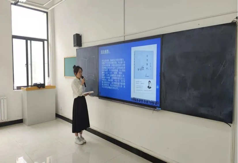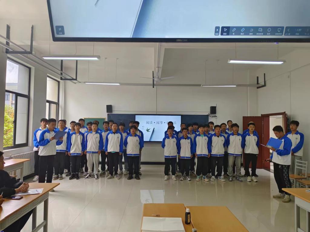 “读万卷书,行万里路”。接下来20机电五年4班的全体同学为大家带来了朗诵《少年中国说》,彻底点燃了同学们对读书的激情。