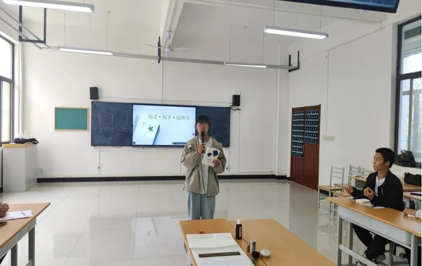 读书可以丰富一个人的有限人生。首先同学们围绕“阅读、阅享、阅快乐”这一主题,从自己最受触动的一本书中将自己的所想所感所得和大家进行分享交流。