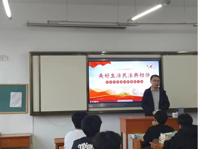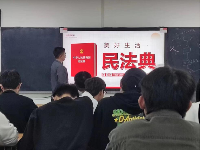为深入贯彻落实习近平总书记在中共中央政治局第二十次集体学习时的重要讲话精神,扎实做好《民法典》学习宣传贯彻工作,让《民法典》走进校园,营造浓厚的学习氛围,帮助同学们树立起学法守法的法制理念。我院于6月4日晚组织了以“美好生活 民法典相伴”为主题的主题班会。