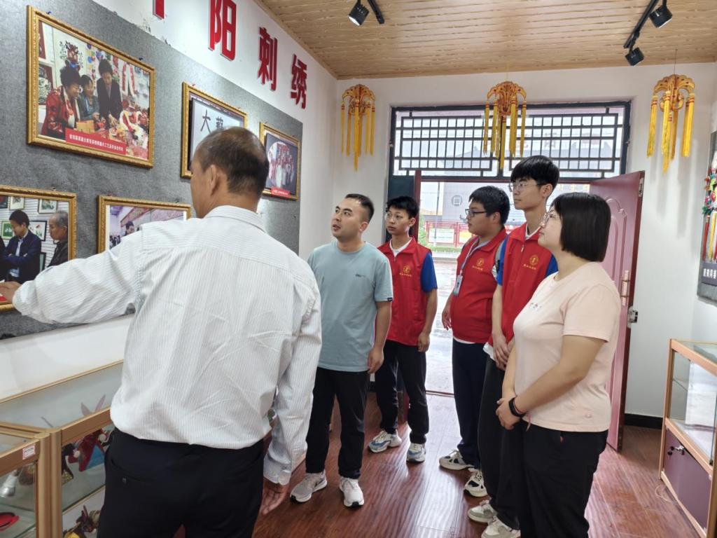 来到闫家村,在村委会刘科长的带领下,团队参观了村史馆、刺绣博物馆。在闫家村村史馆中,一幅幅生动的图片和详细的文字说明,将闫家村刺绣的发展脉络清晰地展现在大家面前。从最初的简单图案到如今复杂的精美花样,从家庭自用的绣品到走向市场的商品,闫家村刺绣经历了无数次的创新与变革。刘科长驻足在一面展示早期刺绣工具的墙前,轻声说道:“这些看似简陋的工具,却创造出了如此精美的艺术,这背后展现的是闫家村绣娘们的坚持和努力。”