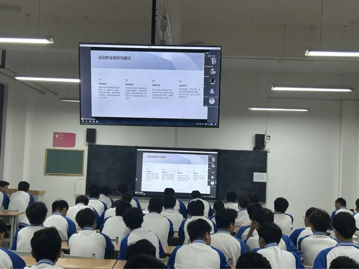 教室里,同学们全神贯注地聆听着,眼神中充满了对未来的渴望与期待。有的同学不时低头记录着重点内容,有的同学陷入沉思,思考着自己的职业方向。大家在默默的聆听中,汲取着前辈们的智慧和力量。