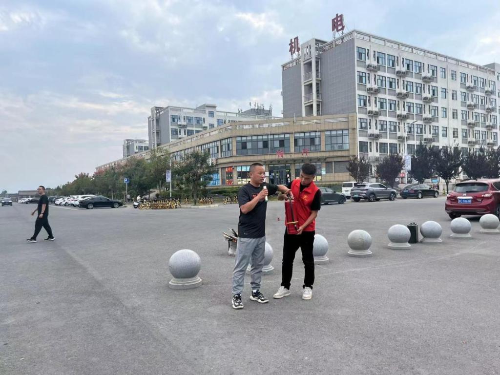 在逃生演练结束后,保卫处王龙老师为师生们讲解了消防器材的正确使用方式,也向大家展示了如何正确使用灭火器,以及在紧急情况下如何迅速进行灭火。
