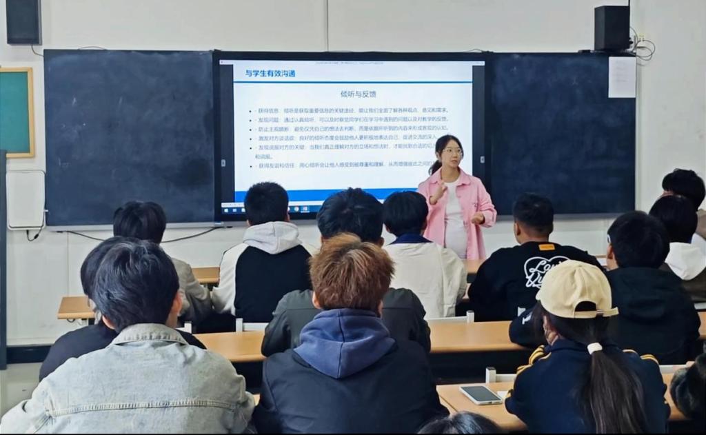 培训会上,首先由教师代表王妙云老师进行讲解。王老师强调了学习委员在班级中的重要桥梁作用,他们不仅要自身成绩优秀,更要协助老师营造良好的学习氛围,带动全班同学共同进步。详细阐述了学习委员的职责和工作重点,包括组织学习活动、收集同学们的学习问题并及时反馈给老师、协助老师进行课堂管理等方面问题。王老师重点讲解了违反学习、学术、考试纪律的行为和处分问题,旨在引导同学们加强学习自觉性,提高班级学风、班风。