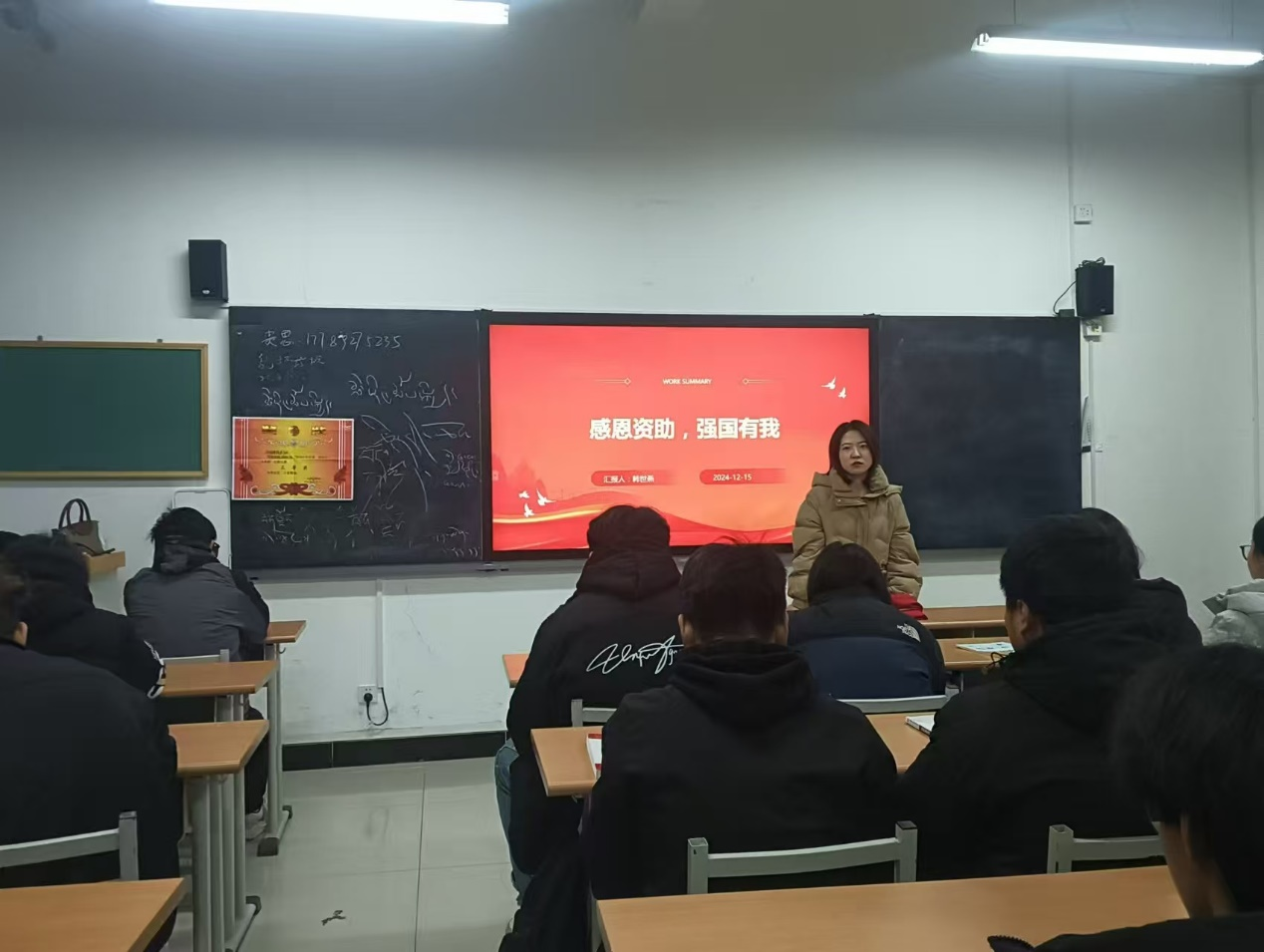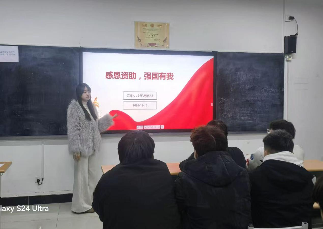 为了让员工深入了解国家助学金政策,明确其意义与价值。2024年12月15日,公司开展了以“感恩资助强国有我”为主题的班会活动。本次班会旨在增强受助员工的感恩意识,培养他们的社会责任感,并激励受助员工努力学习,树立为国家富强而奋斗的理想信念。