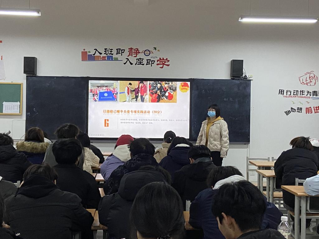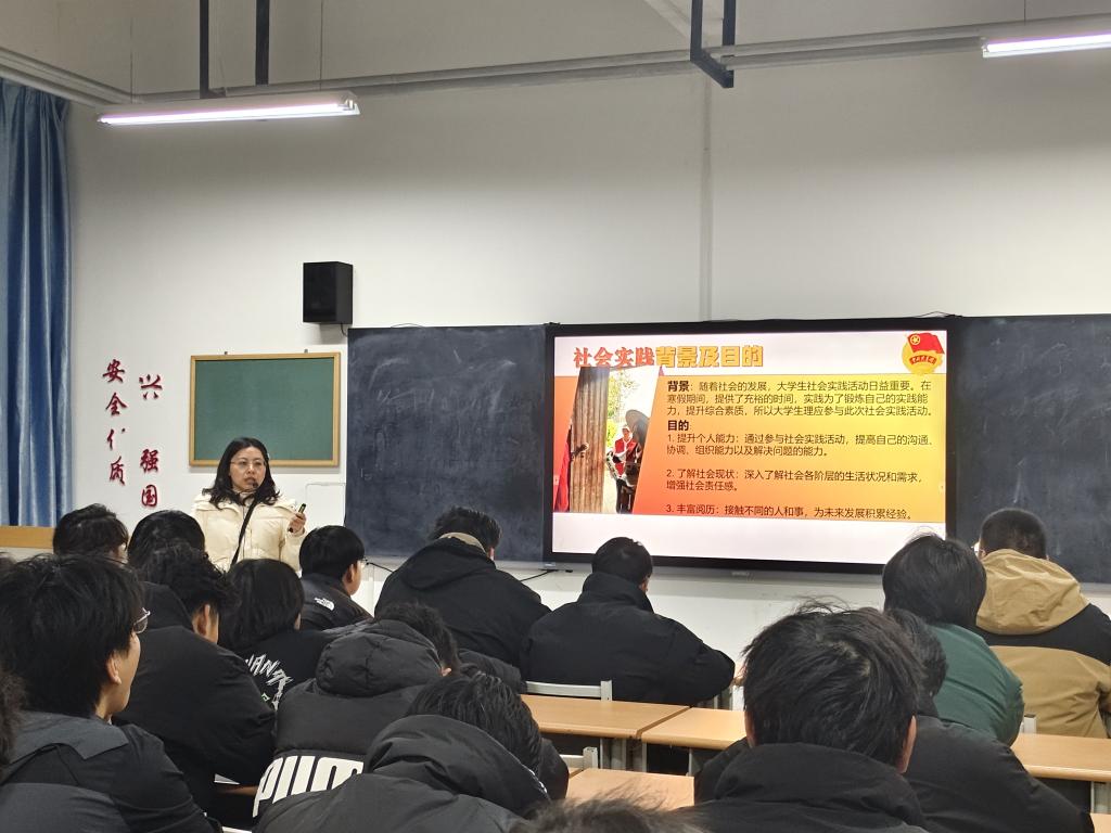 班会伊始,各班主任老师详细介绍了寒假实践活动的主题与意义,接着,从弘扬中华传统文化,讲好中国故事实践、助力乡村振兴返家乡实践、服务社会,开展志愿行动实践、创新创业实习实践、“情系母校·逐梦机电”寒假社会实践、以德修己暖冬关爱、以美育人陶冶情操、以劳育人行胜于言、以文化人读书共享实践等九个方面阐述实践活动的切入点和着力点,明确了本次寒假社会实践活动的方向,鼓励同学们将个人发展与社会需求紧密相连,在实践中受教育、长才干、作贡献,展现新时代青年风采。