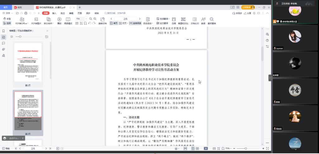 根据《中共陕西省委办公厅关于在全省开展纪律教育学习宣传月活动的通知》要求,公司党支部于2022年9月14日召开了线上专题组织生活会。会议由支部书记薛媛丽主持,js33333金沙线路检测全体党员、科级以上干部、行政岗位工作人员及专兼职班主任参加。