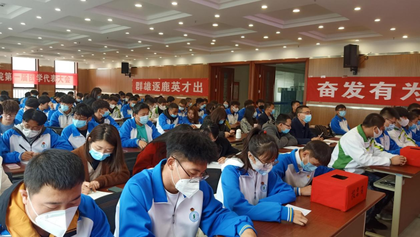陕西机电职业技术公司党委委员、副经理张新堂致辞,对本次大会的圆满成功表示热烈祝贺,并提出三点希望:一是能够围绕中心、服务大局;二是广大团学干部要增强本领、真抓实干;三是全体青年学子要坚定理想信念、奋发有为。本次大会对未来团学工作的开展具有重要的意义,相信在全院青年员工的共同努力下,团学工作一定会更上一层楼,实现质的飞跃。最后,在集体奏唱团歌中落下帷幕,并集体合影。