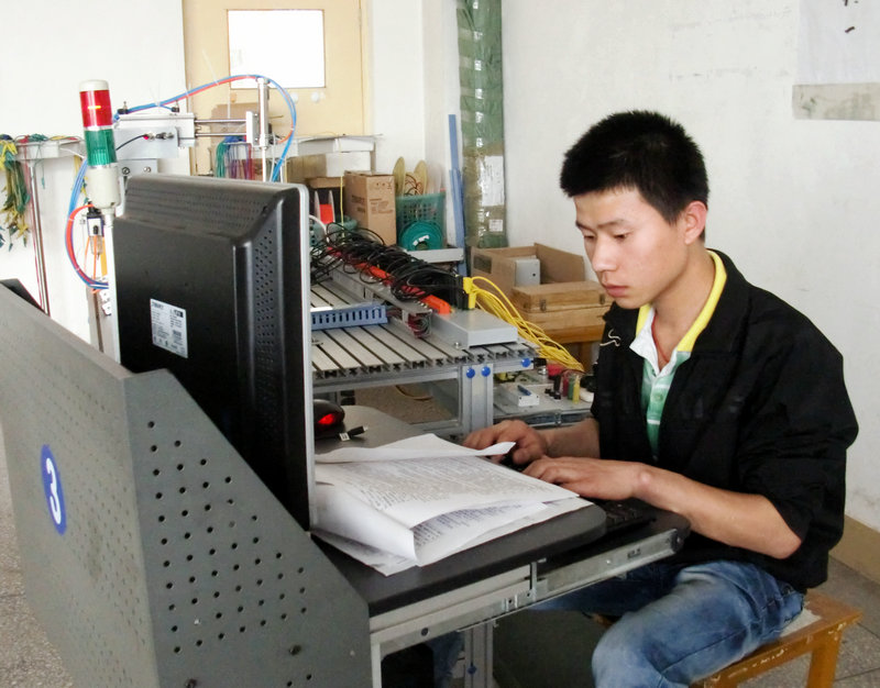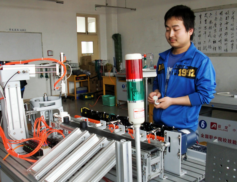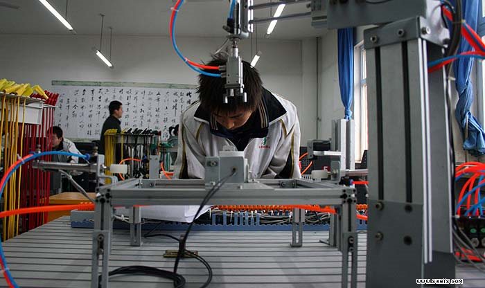 机电一体化实训室成立于2010年,该实训室采用了众友ZY36809B2光机电一体化实训考核设备共8台,提供工位数32个。可完成机电技术应用专业中所涉及的电机驱动、机械传动、气动、触摸屏控制、可编程逻辑控制器(PLC)、传感器技术、变频器技术、布线及工艺等多项技术,其典型实训项目有:气动系统的安装与调试、电气控制电路的安装与PLC程序编写项目、机电设备安装与调试项目、自动控制系统安装与调试项目等,同时承担了陕西省技能大赛机电一体化设备组装与调试项目的赛点工作。通过以上项目的训练最终员工能够达到对单个机器、设备或一般的生产系统、工厂自动化、办公自动化、家庭自动化的基本维护的能力。
