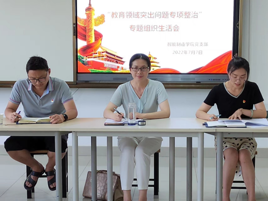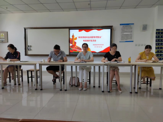 2022年7月7日,公司党支部在宝福路校区汽车机电大楼407室,组织召开“教育领域突出问题专项整治”专题组织生活会。由公司党支部书记薛媛丽主持,支部全体党员参加了会议,公司党委副书记张琴列席会议。