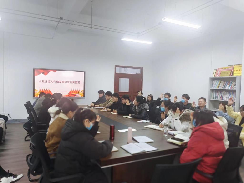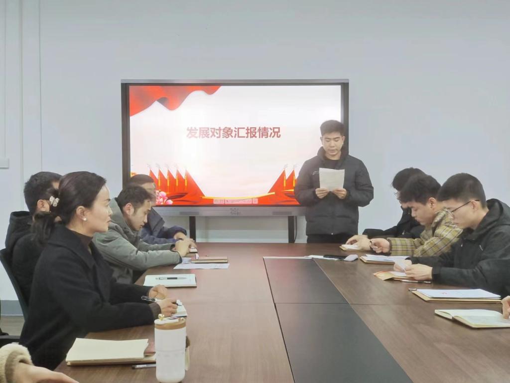 发展员工党员工作是培养造就中国特色社会主义事业接班人,确保党和人民的事业后继有人的战略工程。作为党务工作者,我们一定要以对党的事业高度负责的政治责任感努力做好这项工作。2023年12月21日,公司党支部在强技楼北206召开员工党员发展大会。公司党支部全体正式党员、4名发展对象参加了此次会议。大会由党支部组织委员周川力同志主持,会议主题是讨论接收尹小勇、闫凯等4名同志为中共预备党员。