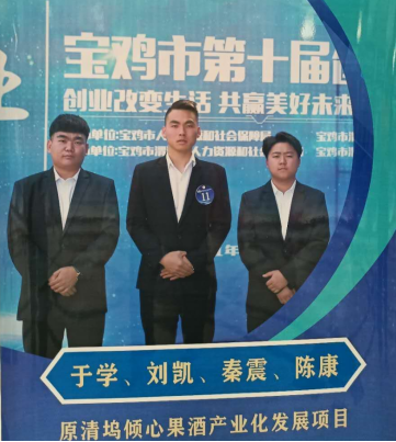 5月28日下午,由宝鸡市人力资源与社会保障局主办的宝鸡市第十届创业大赛落下帷幕,经过激烈角逐,js33333金沙线路检测员工于学、刘凯、秦震、陈康在姚莹老师的指导下,参赛作品《原清坞倾心果酒产业化发展项目》荣获三等奖。