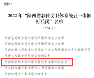 祝贺|机电系获“陕西省教科文卫体系统五一巾帼标兵岗”荣誉称号