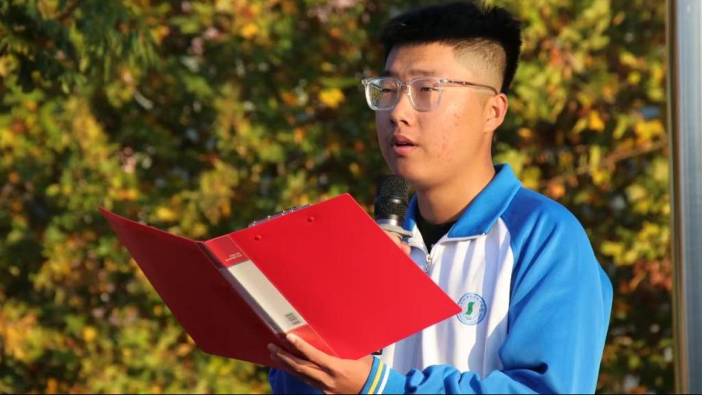 升旗礼毕,22电气技术3班任英健同学以《自立自强,做人生路上的强者》为主题进行国旗下演讲。他呼吁同学们作为新时代的青年一定要积极进取,用微笑面对困难,从自立走向自强,坚韧不拔,不畏困难与挫折,成为人生道路上的强者。