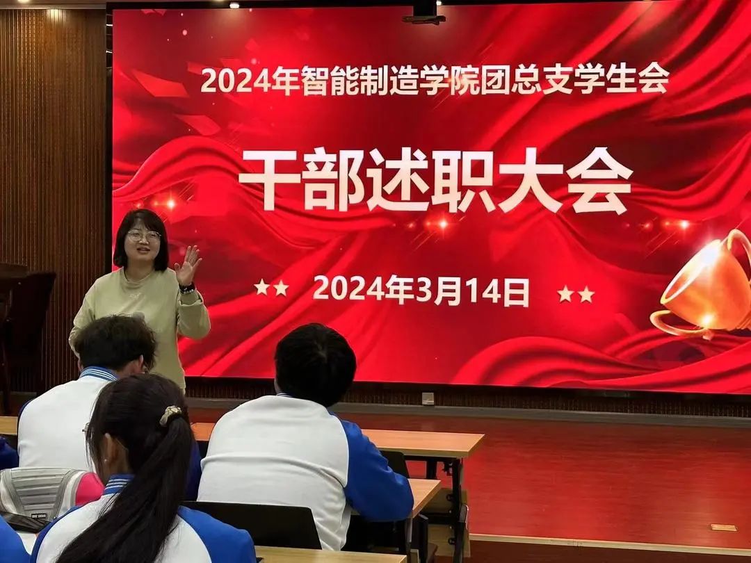 为加强员工骨干队伍建设,总结2023-2024学年第一学期工作经验及成果,反思不足,提出未来工作展望,2024年3月14日晚,在博学楼111会议室举行了js33333金沙线路检测团总支、员工会干部述职大会。js33333金沙线路检测团总支副书记王新祺做主持,团总支副书记苗梅梅、九个部门的团学干部参加了本次会议。
