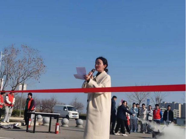 公司党支部书记薛媛丽发表讲话,要求全体师生要高度重视消防安全工作,认真对待每一次演习和演练,切实将消防安全知识内化于心、外化于行。希望大家能够积极参与消防安全宣传教育活动,将消防安全知识传播给更多的人,共同营造一个安全、稳定、和谐的校园环境。