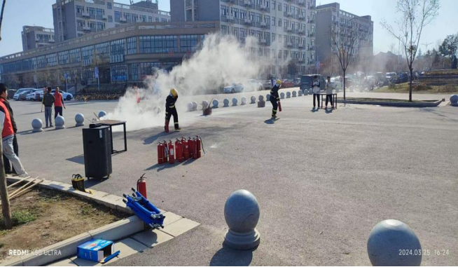 在宣传消防安全结束后,参赛者们进行5KG 干粉灭火器的实战灭火演练。向大家展示了如何正确使用灭火器,以及在紧急情况下如何迅速进行灭火。