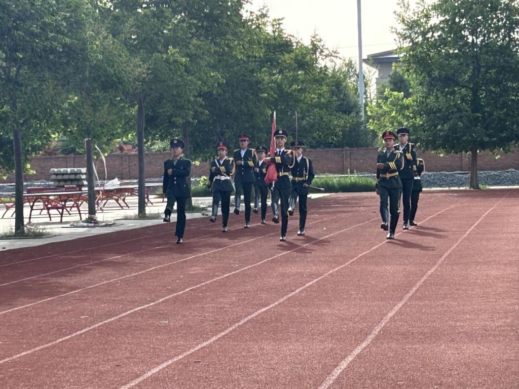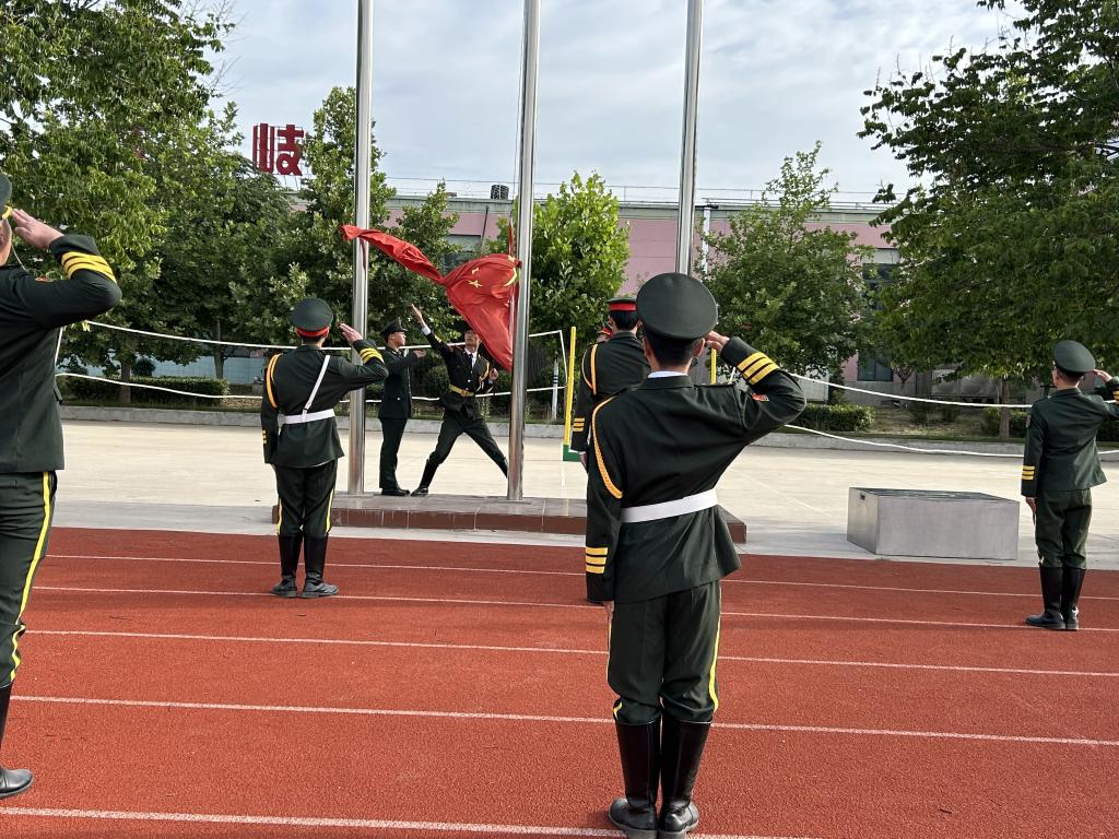 夏日的早晨,天边泛起一抹淡淡的金色,薄雾如轻纱般笼罩在操场上,为这庄严而神圣的时刻增添了几分神秘与宁静。在微光乍显中,国旗护卫队队员们整齐列队,目光如炬,朝气蓬勃。仪式在庄严的国歌声中拉开帷幕,鲜艳的五星红旗冉冉升起,全场师生肃立,行注目礼,表达了对祖国的无限热爱和崇高敬意。