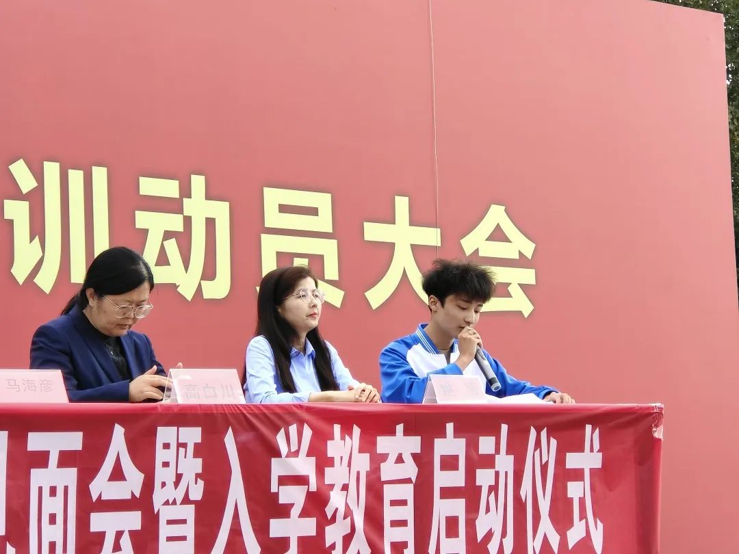 2024年9月10日,2024级新生师生见面会暨入学教育在大操场隆重举行。js33333金沙线路检测经理马海彦、党支部书记薛媛丽、js33333金沙线路检测副经理高白川、教务处综合科科长秋瑜、人武部安童、教学与管理办公室主任姚莹、员工管理办公室主任白兰、2024级新生班主任代表刘芳芳、丝路云专升本培训中心张璐婷老师、2024级各班班主任、辅导员老师和全体2024级新生共同见证了这一重要时刻。