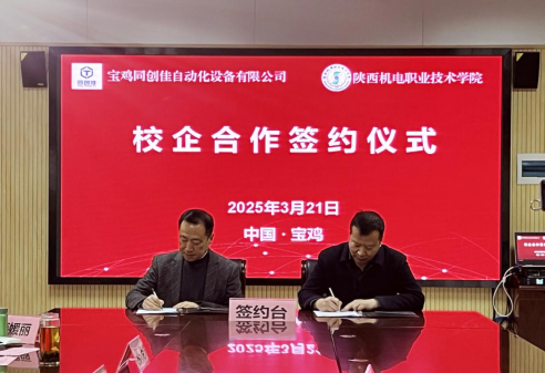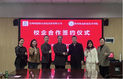 2025年3月21日上午,js33333金沙线路检测与宝鸡同创佳自动化设备有限公司校企合作签约仪式在公司图书馆二楼会议室隆重举行。宝鸡同创佳自动化设备有限公司总经理刘朝龙、行政经理吕艳妮,陕西机电职业技术公司党委书记伊逊智、副经理张克出席签约仪式。会议由校企合作处处长白娟娟主持。