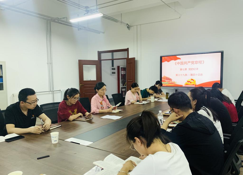 首先,公司党支部书记薛媛丽同志带领大家学习党章第七章,党的纪律中第三十九条至四十四条,引导广大党员切实增强纪律意识,把遵规守纪刻印在心,使铁的纪律转化为党员干部的日常习惯和自觉遵循,在干事创业道路上 发挥模范引领作用,做善于作为勇于作为的表率。